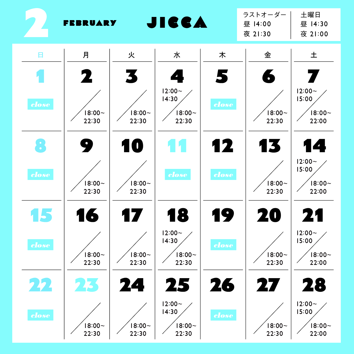 • 2月のカレンダーです