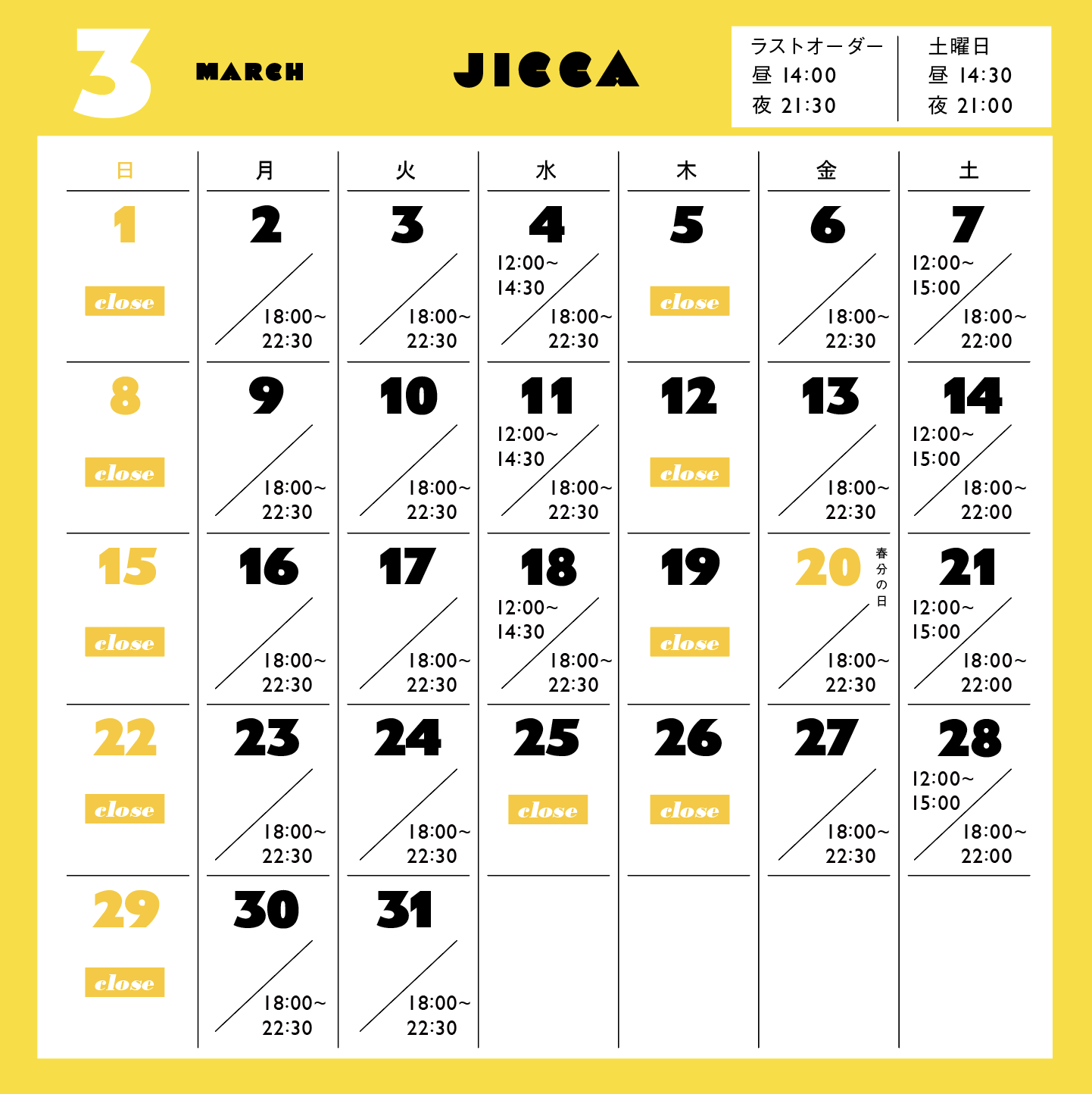3月のカレンダーです